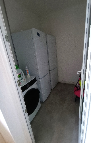 L’appartement dispose d’une cuisine équipée comprenant un micro-ondes et un four, ainsi que deux réfrigérateurs avec compartiment congélateur. Un salon lumineux avec balcon offre un espace convivial pour se détendre. Une salle de bain, un WC indépendant et une machine à laver sont également à disposition des occupants.