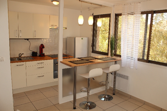 T2 situé dans le quartier prisé de Jeanne dArc, offrant un cadre calme avec vue sur jardin. A proximité de tous les commerces et commodités. Il se compose dune entrée, dun salon lumineux avec canapé, meuble TV, télévision et table basse, dune cuisine équipée avec four et micro-ondes, dune chambre avec lit double et rangements, ainsi que de WC séparés et dun lave-linge dans le logement.